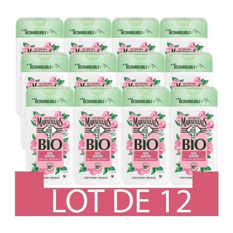 [Lot de 12] LE PETIT MARSEILLAIS Gel Douche Hydratant - Rose Sauvage - Bio - 250ml