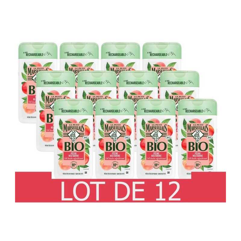[Lot de 12] LE PETIT MARSEILLAIS Gel Douche Rafraichissant - Peche Nectarine - Bio - 250ml