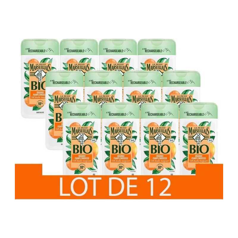 [Lot de 12] LE PETIT MARSEILLAIS Gel Douche Energisant - Orange Pamplemousse - Bio - 250ml