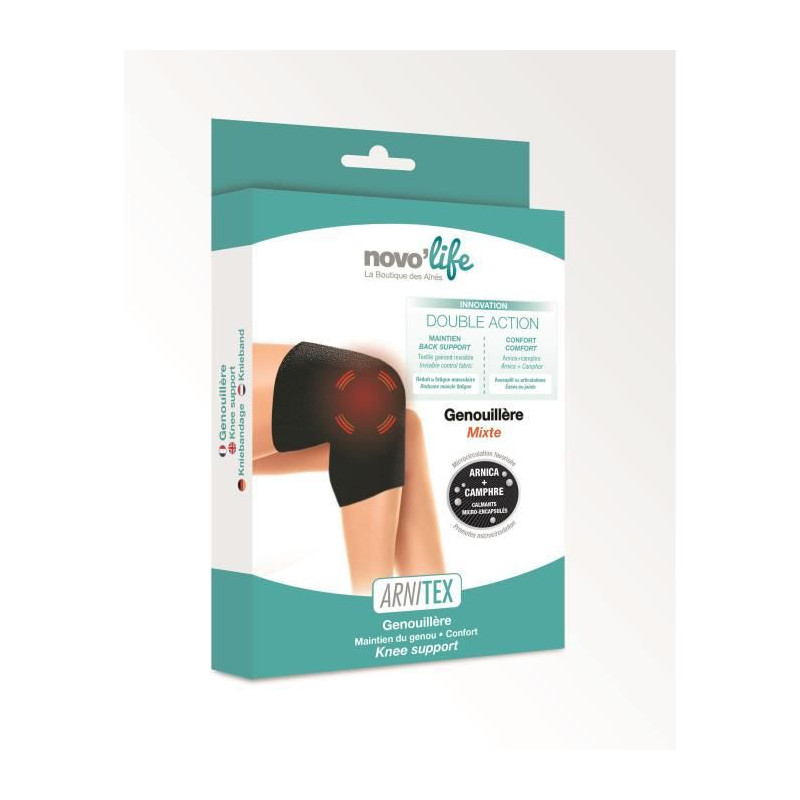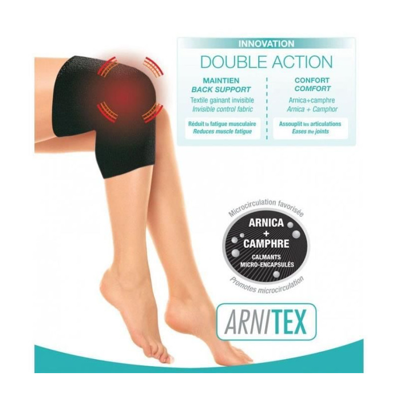 ARNITEX NL-472870 - Genouillere Mixte Taille XL/XXL 18 cm - Avec notice - Confort - Tres légere a porter - Invisible sous les vetements - Soutien immédiat - Textile aux microcapsules, innovant et intelligent - Technologie unique qui émousse la fatigue musculaire