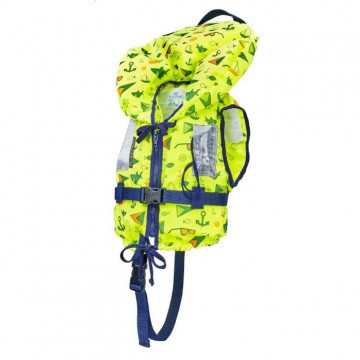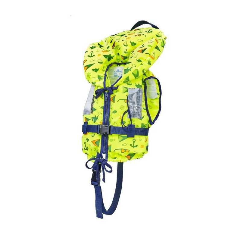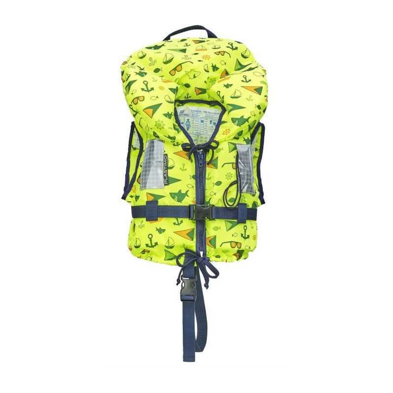 Enfant de moins de 30 kg - Gilet de catégorie 100 N - Flottabilité assurée par de la mousse de polyéthylene - Assure le retournement et maintient la tete hors de l'eau - Grand col enveloppant avec flottabilité accrue - Sangle sous-cutale - Fermeture : zip + sangle réglable avec boucle plastique.
