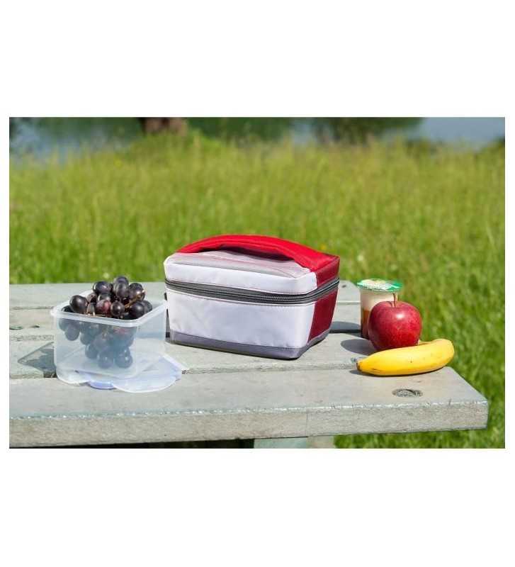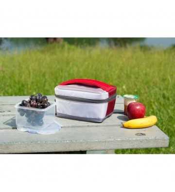 Sac Isotherme Freez Box Medium 2,5 L + Flexi Freez Pack S rouge et gris en PVC. Glacieres avec boîte rigide en PVC et compartiment de rangement modulable.