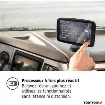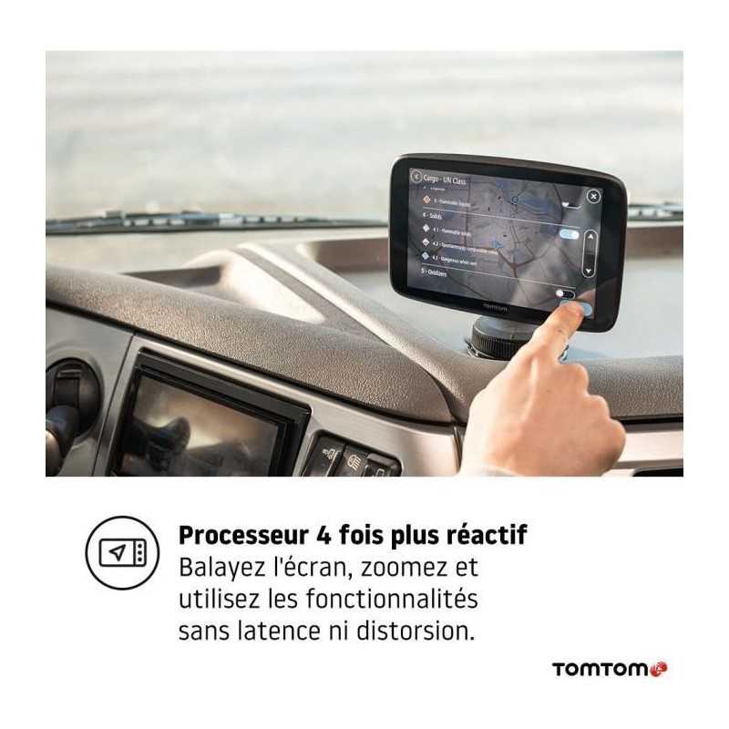 Ecran HD 6 pouces - carte monde, navigation spécialisée. Carte et calcul de parcours adaptés a votre véhicule, TomTom Traffic et 1 an d'alerte des zones de danger. Alerte de restrictions en temps réel et + 50 000 POI dédiés au grand véhicule.