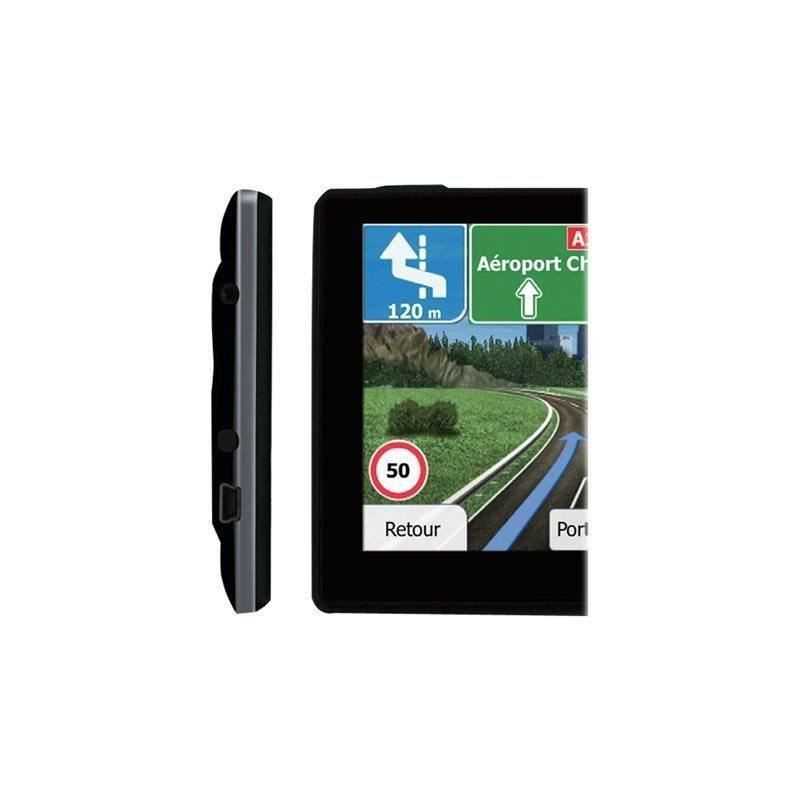 Navigateur GPS simple d'utilisation, doté d'un écran large de 5'', desing ultra slim. Il offre l'essentiel des fonctions GPS comme le guidage assisté de changement de voie, l'indicateur de l'état de conduite et la limitation de vitesse, les points d'intéret Guide du Routard, l'affichage en 3 D,... Mise a jour a vie des cartes.