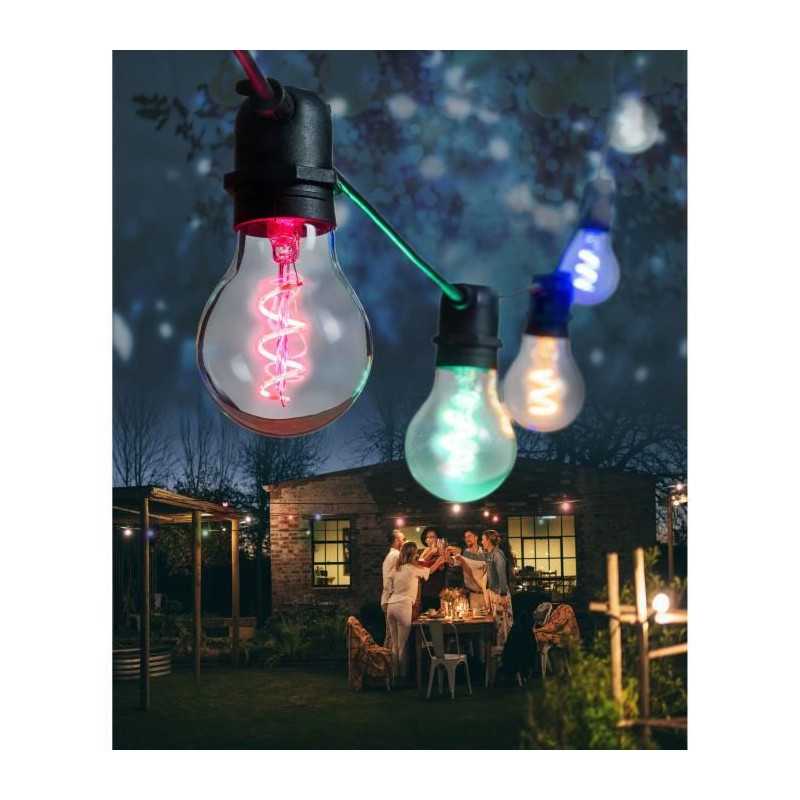 LOTTI Guirlande lumineuse guinguette d'extérieure - 10 ampoules E27 goutte A60 - Multi couleur - Raccordable - 5 metres
