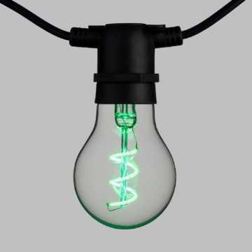 Guirlande lumineuse guinguette - Longueur 5 m - 10 ampoules verre transparent E27 Goutte A60 avec filament LED spiral - Multi couleur - Qualité professionnelle - Prolongeable jusqu'a 15 m avec le transfo - Ampoules remplaçables - Lumiere fixe - Transformateur de sécurité IP44 36V - Câble noir 4 m - Norme européenne