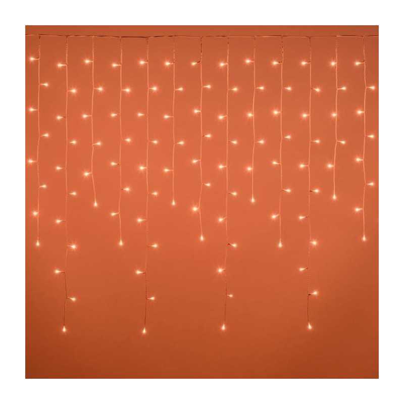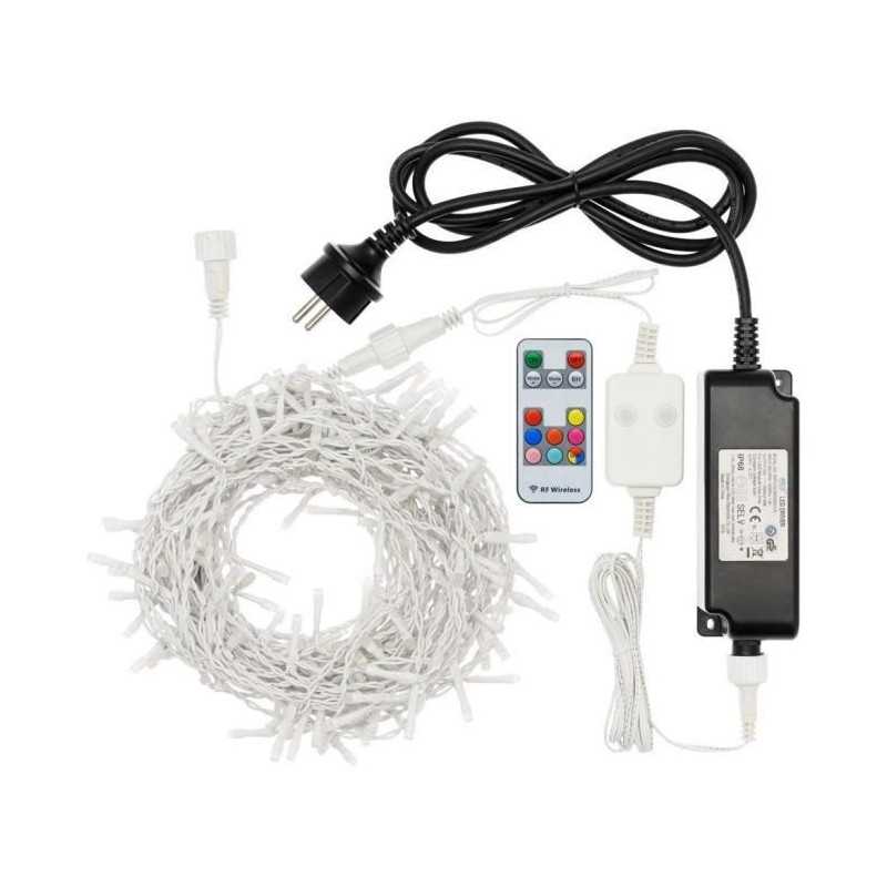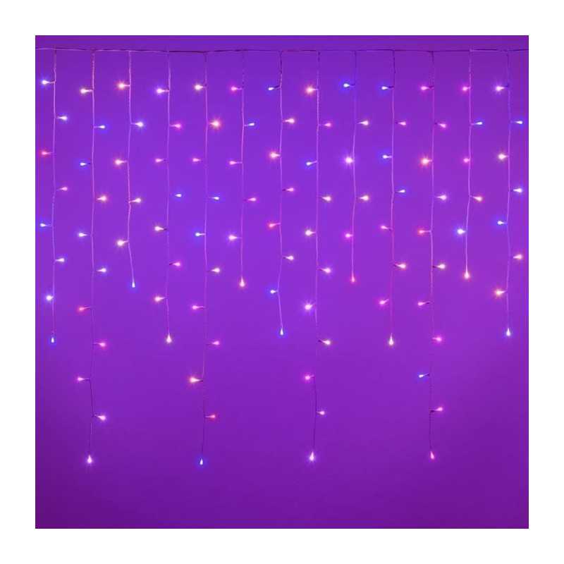 Stalactite Ruban WONDER 315xH110cm 175 LED SuperBright Ø5mm, 8 couleurs x 6 jeux de lumiere (48 effets lum inclus Blanc Chaud et Lumiere Fixe) sélec par le biais d'un Contrôleur 2 Touches Steady/Functions ou Télécommande RF 13 Touches, Timer On-Off 6-18 heures désactivable, Prolongeable avec Cod. 63808 (Max 525 led / 9,45m), Tranf a Basse Tension de Sécurité, IP44 uti en Extérieur et Intérieur, Câble Blanc, Câble d'A