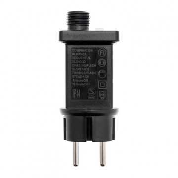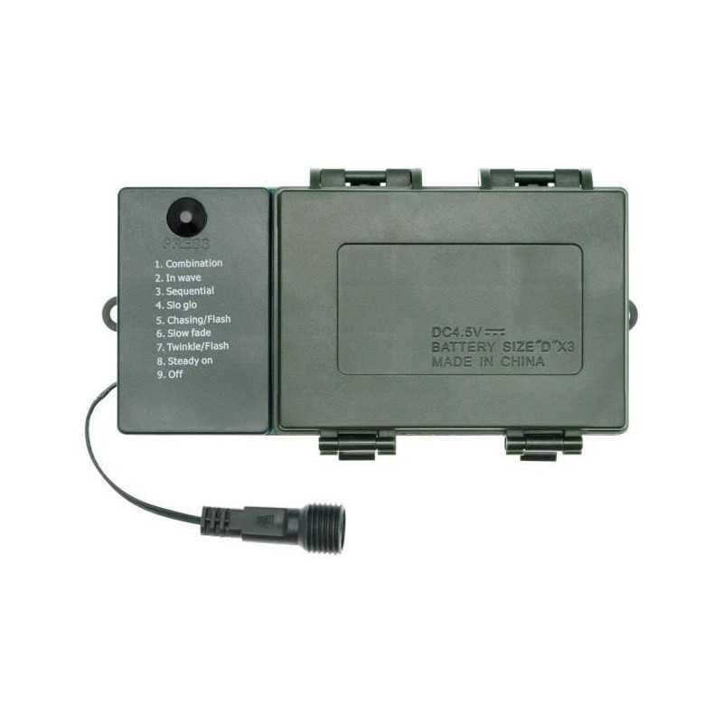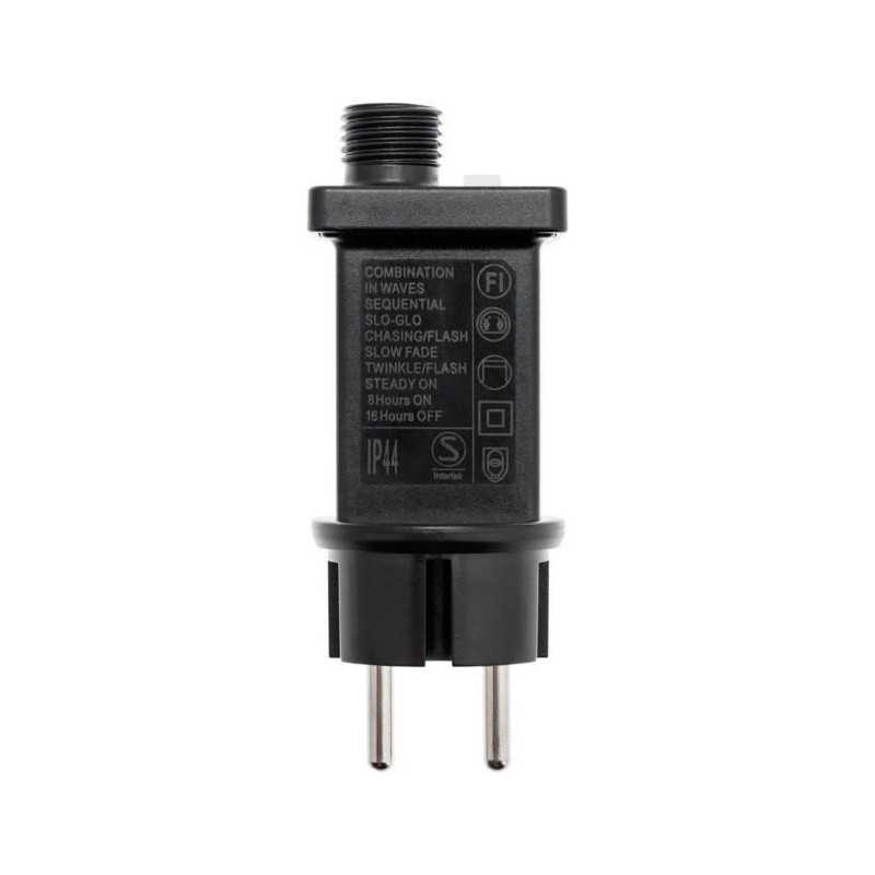 Guirlande lumineuse Multi Usage 50m TBS 1000 LED BLANC CHAUD Ø5mm Reflex, 3 Alimentations interchangeables incluses: Transformateur + Porte-Piles 3xD 1,5V (Piles non incluses) + Panneau Solaire 1,5V, Timer Contrôleur Mémoire 7 jeux de lumiere + lumiere Fixe sélectionnables avec Timer 8 heures On (16 heures Off) désactivable, Fonction a Basse Tension de Sécurité, utilisation en Extérieur et Intérieur, Câble Vert, Dim