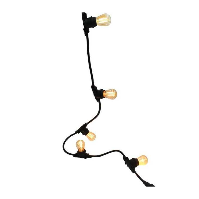 GUIRLANDE LUMINEUSE E27 : Link Me Light est une guirlande lumineuse dotée de 10 ampoules LED culot E27 afilament raccordable jusqu'a10 guirlandes. Cette guirlande lumineuse LED se distingue par son design ala fois rétro et tendance. Elle est idéale pour faire briller vos soirées et vous allez adorer son côté design et élégant pour illuminer vos plus beaux événements.