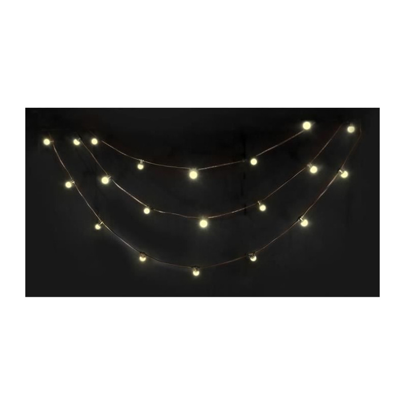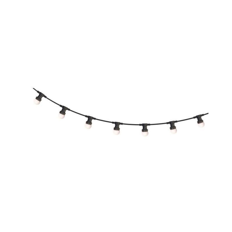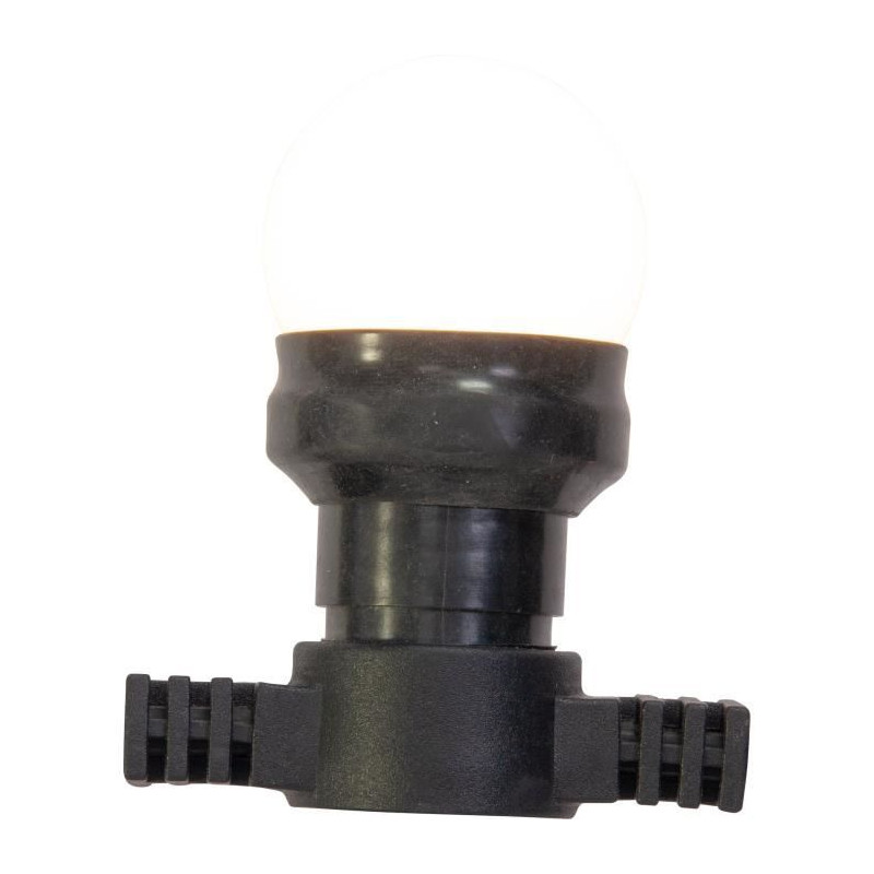 Guirlande lumineuse style guinguette avec 20 LEDs blanches chaudes d'une longueur de 10m - Avec une protection IP44, votre guirlande est conçue pour une utilisation extérieure - Rendez vos moments magiques ! Spécificités : 50 cm entre chaque ampoule, entrée et sortie électrique permettant d'enchaîner plusieurs guirlandes