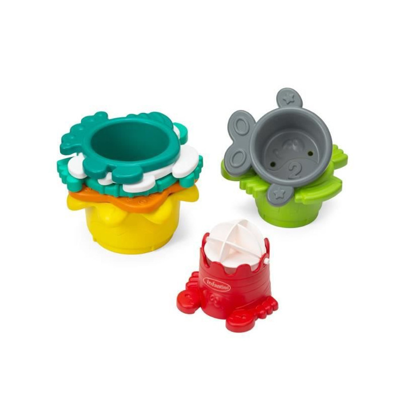 Avec autant d'activités, l'heure du bain ne sera plus jamais une routine. Bébé pourra choisir de s'amuser avec son orque boîte a forme, dotée de 4 formes de couleurs différentes et d'une fonction jet d'eau pour asperger bébé, ou bien avec ses 8 gobelets gigognes a empiler, ou enfin, avec son épuisette qui lui permettra de pecher 3 petits animaux aquatiques de formes et couleurs diverses. Parfaitement adapaté pour le