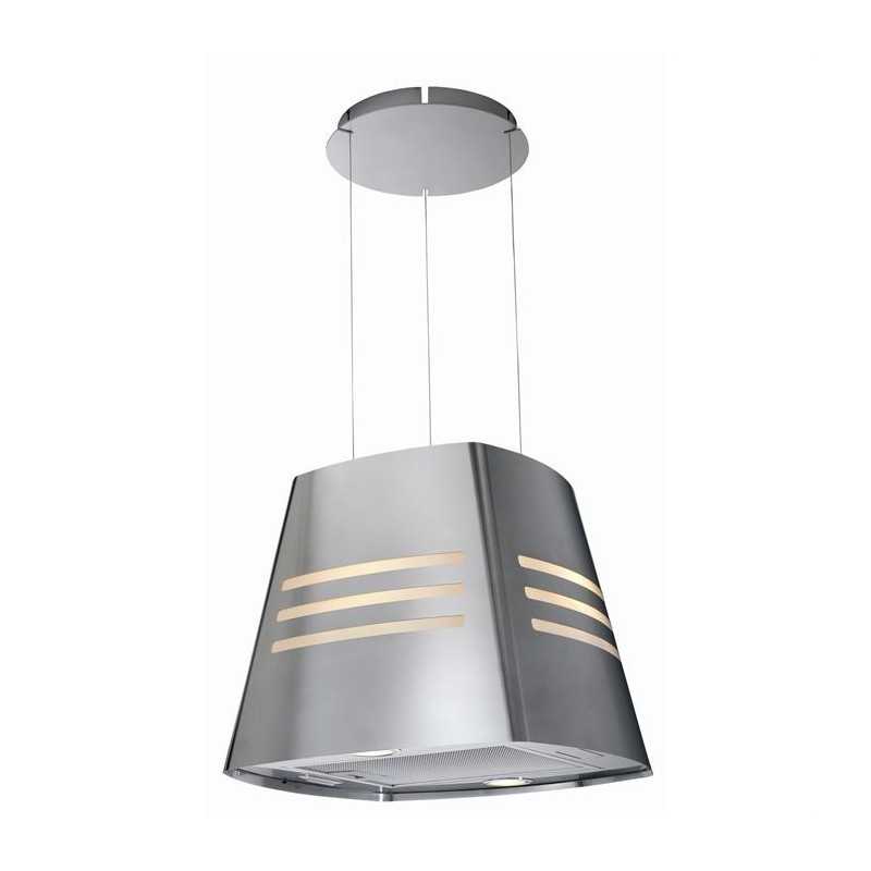 Hotte décor ilôt - Recyclage - Débit max d'aspiration : 460 m3/h - 1 moteur - Eclairage halogene (2 x 20) - Commandes électroniques - 1 filtre a charbon actif en inox et lavable - 3 vitesses - Régulation électronique des vitesses - Garantie du fabricant 1 an pieces - Coloris : inox
