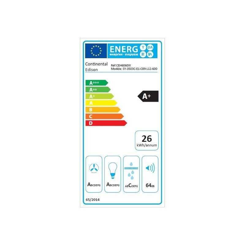 Continental Edison Hotte décorative, 605 m3/h, 3 vitesses, inox, Classe A