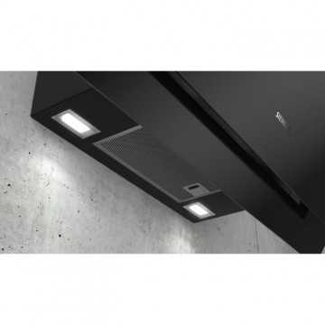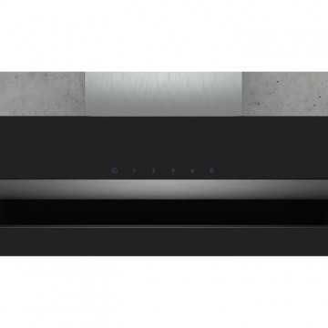 Inclinée décorative murale-Noir et verre-680 m3 air max / h en mode turbo-65 dB max-Evacuation / recyclage-L80cm-4 vitesses dont 1 intensive-Eclairage LED-Commande TouchControl-Aspiration périmétrale-Position intensives avec retour automatique au bout de 6 minutes-2 filtres a graisse métalliques lavables au lave-vaisselle