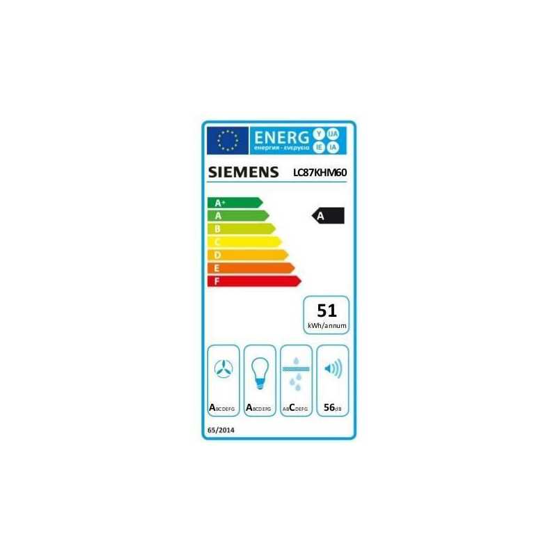 SIEMENS LC87KHM60 - Hotte décorative murale-Evacuation / recyclage-680 m3 air max / h en mode turbo-65 dB max-4 vitesses-L80 cm-