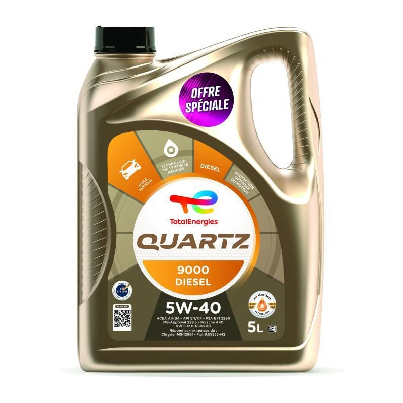 TOTAL HUILE MOTEUR 5L QUARTZ 9000 DIESEL 5W40