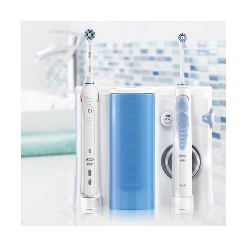 Oral-B Smart 5000 + Oxyjet Kit Brosse a Dent Electrique Rechargeable, 1 hydropulseur, 1 manche, 6 brossettes, 4 canules Oxyjet