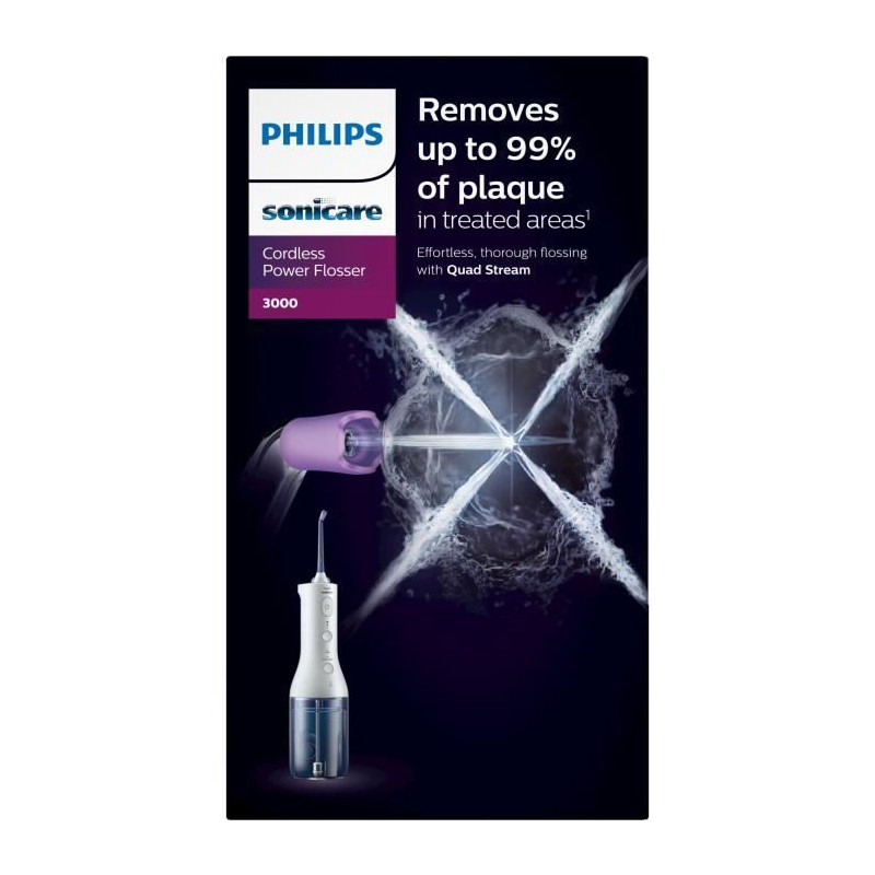 Philips Sonicare Jet dentaire Power Flosser sans fil Noir, 2 canules (1 Quad Stream F3 & 1 Standard F1), 1 étui de transport pour canules, 1 Chargeur USB-C