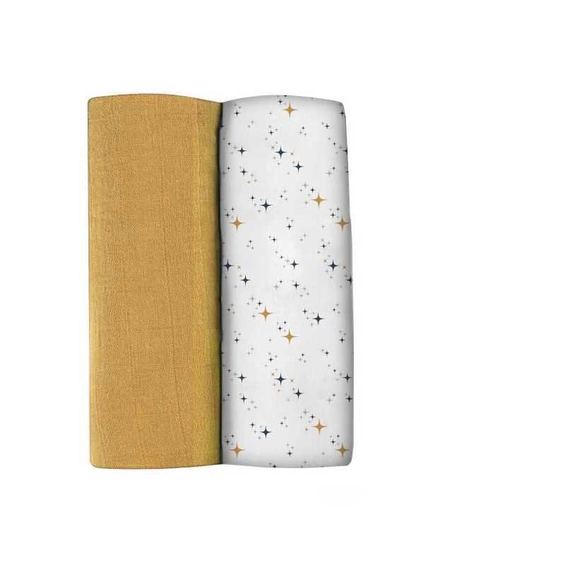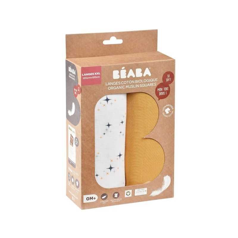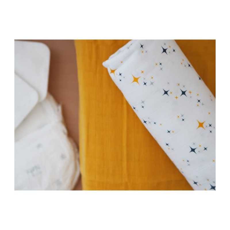 BEABA, Boîte 2 LANGES 120cm - Jaune Miel / Nuit étoilée