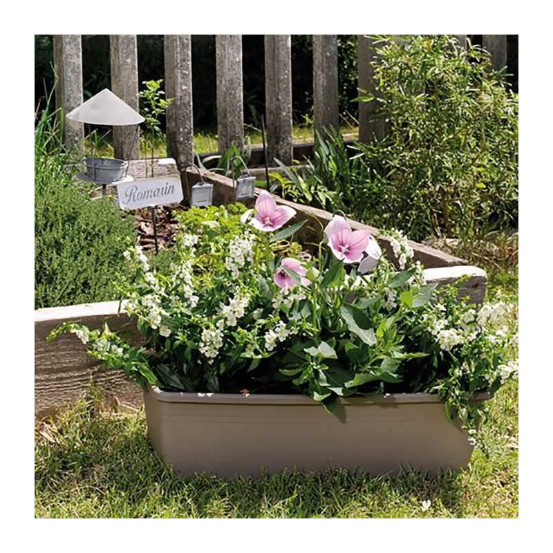 DEROMA Jardiniere rectangulaire Day R Camel - 50 cm H14,5 cm - Contenance : 8 litres - Percé - Coloris : Taupe - Matiere Recyclat 100% recycl‚ et 100% recyclable / Injecté - Résistant au gel et aux UV - Usage extérieur.