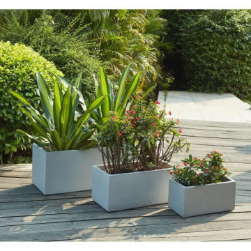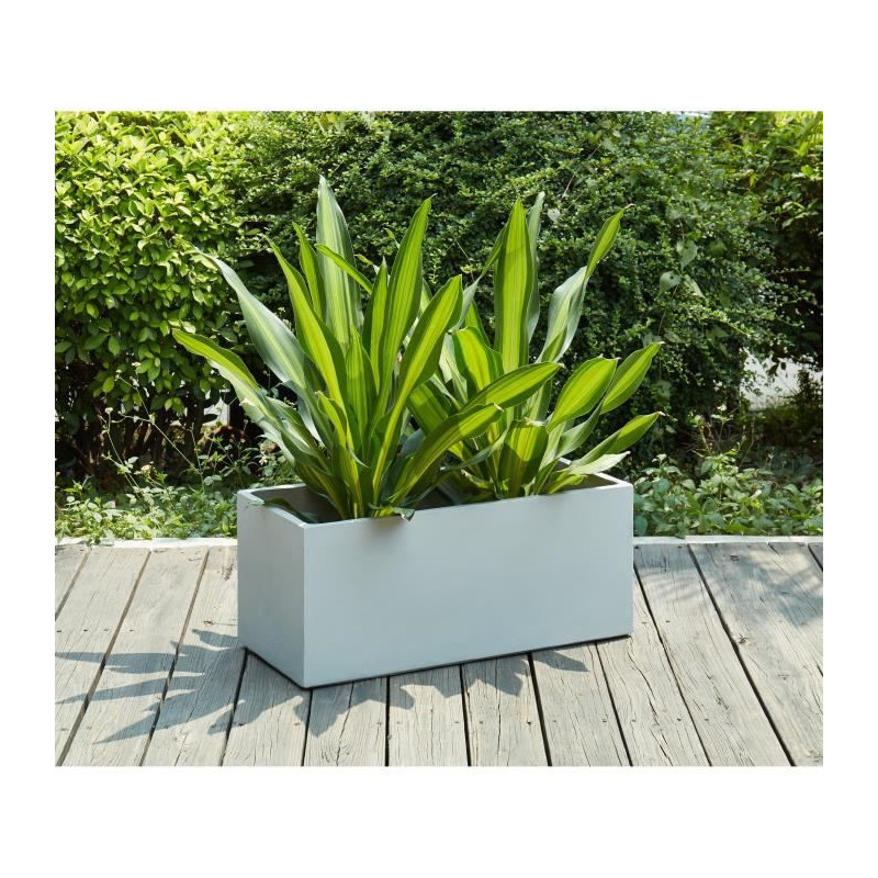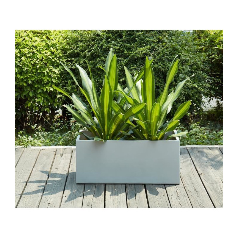 Bac a fleurs en fibre de verre style ciment - 76 x 34 x 32 cm - 80 L - Gris clair