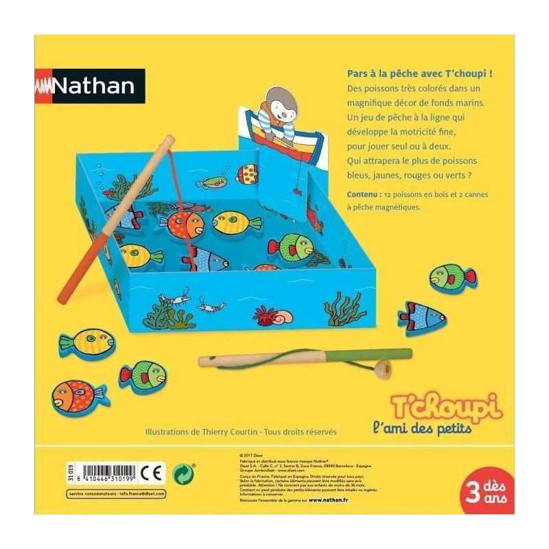 NATHAN - Un jeu de peche a la ligne évolutif de 2 a 4 ans. Un jeu de motricité fine pour aller a la peche avec T'choupi. Qui attrapera le plus de poissons rouges, bleus, verts ou jaunes? Mixte - Des 3 ans - Livré a l'unité