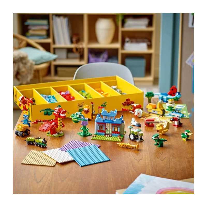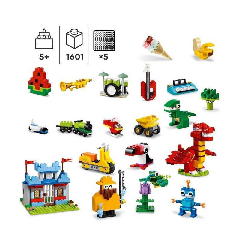 Ce set LEGO® Classic de 1 601 pieces inclut 5 plaques de construction, 24 idées de construction, des défis de construction amusants et une boîte pour trier les briques LEGO incluses.