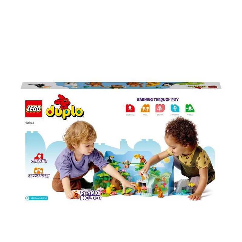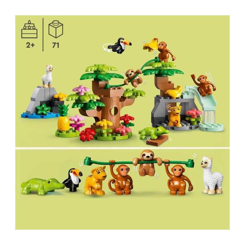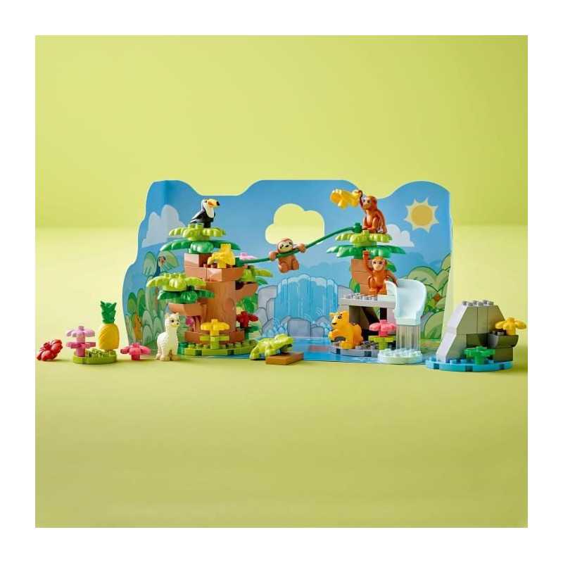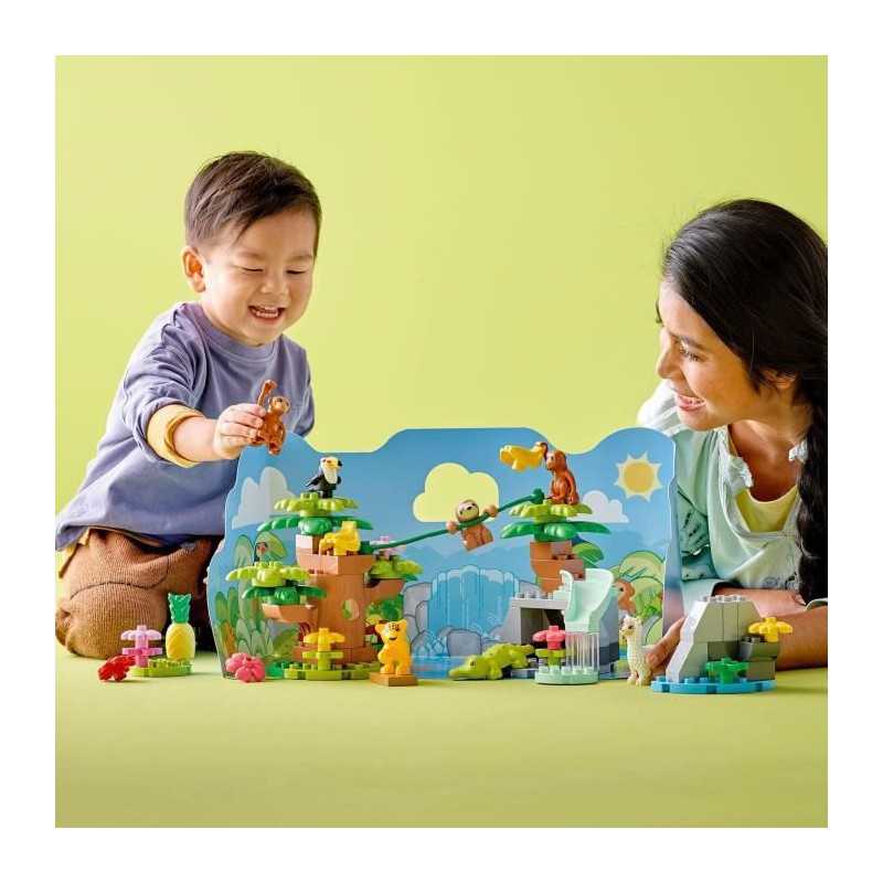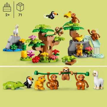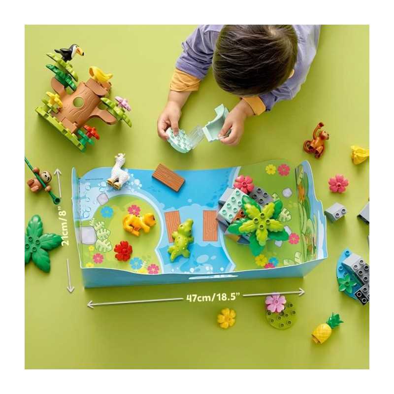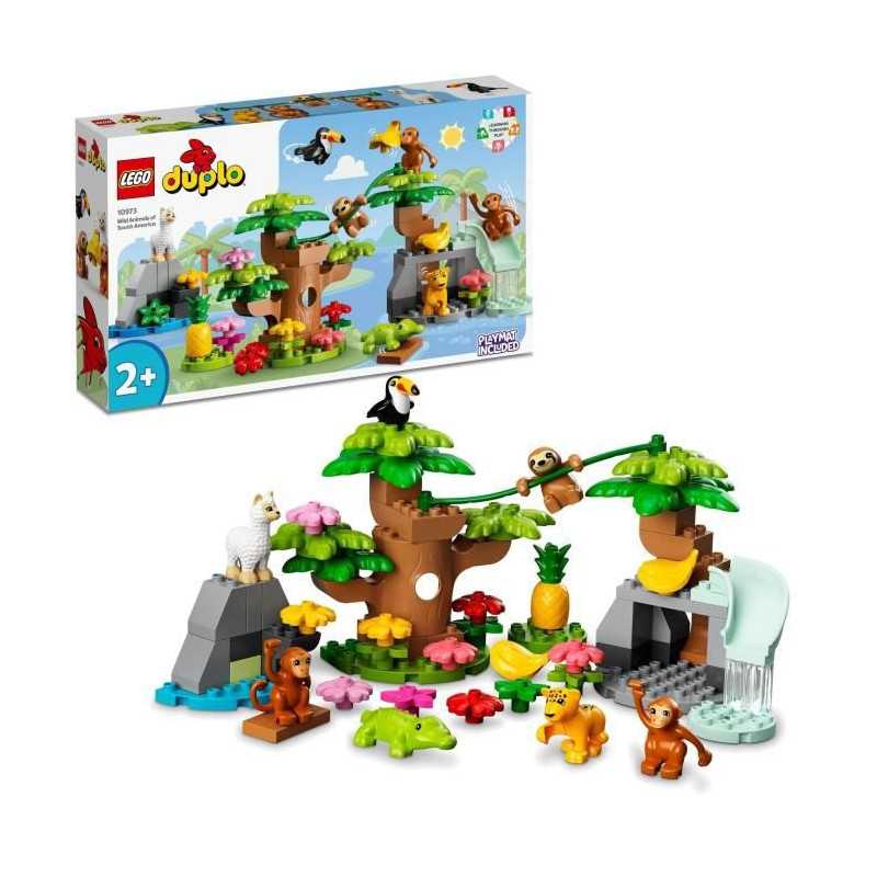 LEGO 10973 DUPLO Animaux Sauvages d'Amérique du Sud, des 2 Ans, Figurines de Crocodile, Singes, Paresseux et Jaguar, Tapis de J