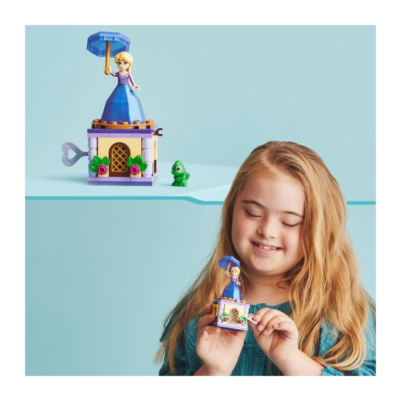 Amusez les fans de Raiponce de Disney avec un set composé d'une base avec plateau tournant, d'une mini-poupée LEGO® dans une robe « diamant » et d'un animal LEGO.