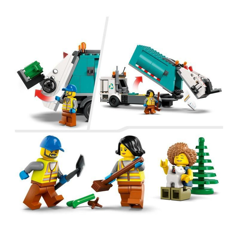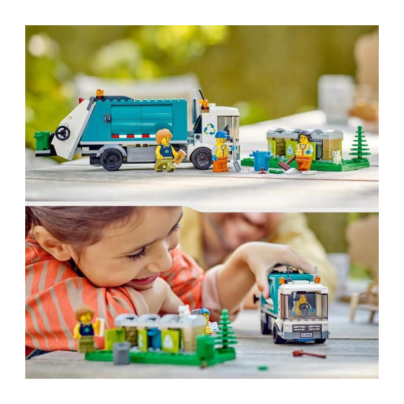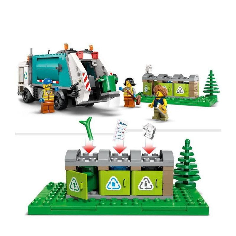 Les enfants soucieux de l'environnement vont adorer cet incroyable camion de recyclage LEGO® City, assorti d'une station de tri, de 3 minifigurines et d'un chat.