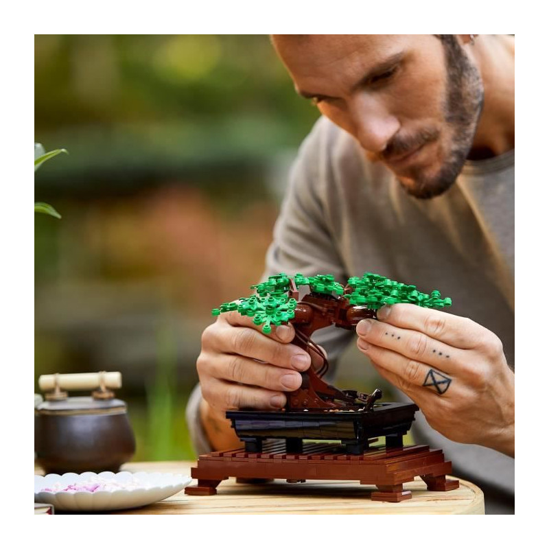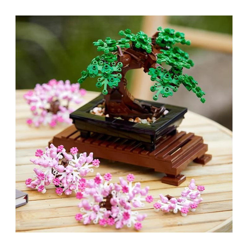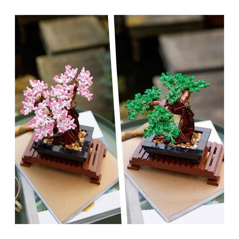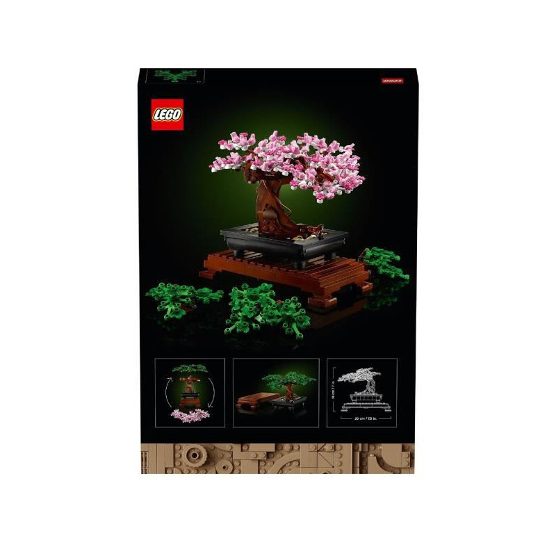 Cette construction pour adultes LEGO Bonsai est livré avec un vase aux formes rectangulaires et un socle LEGO qui reproduit a merveille la forme des lattes de bois, formant un adorable accessoire de décoration a installer chez soi ou au travail et qu'on peut exhiber fierement.