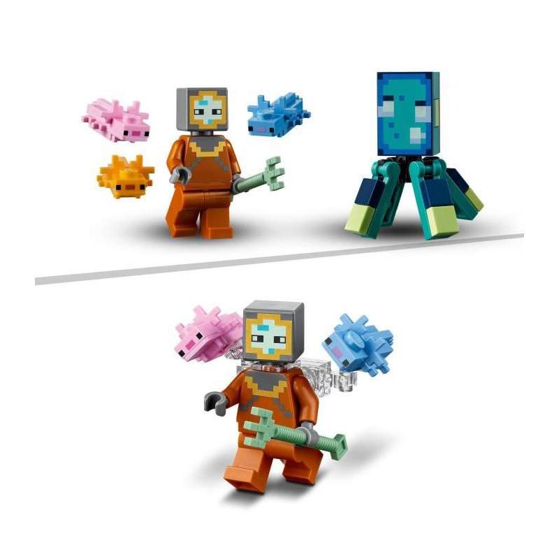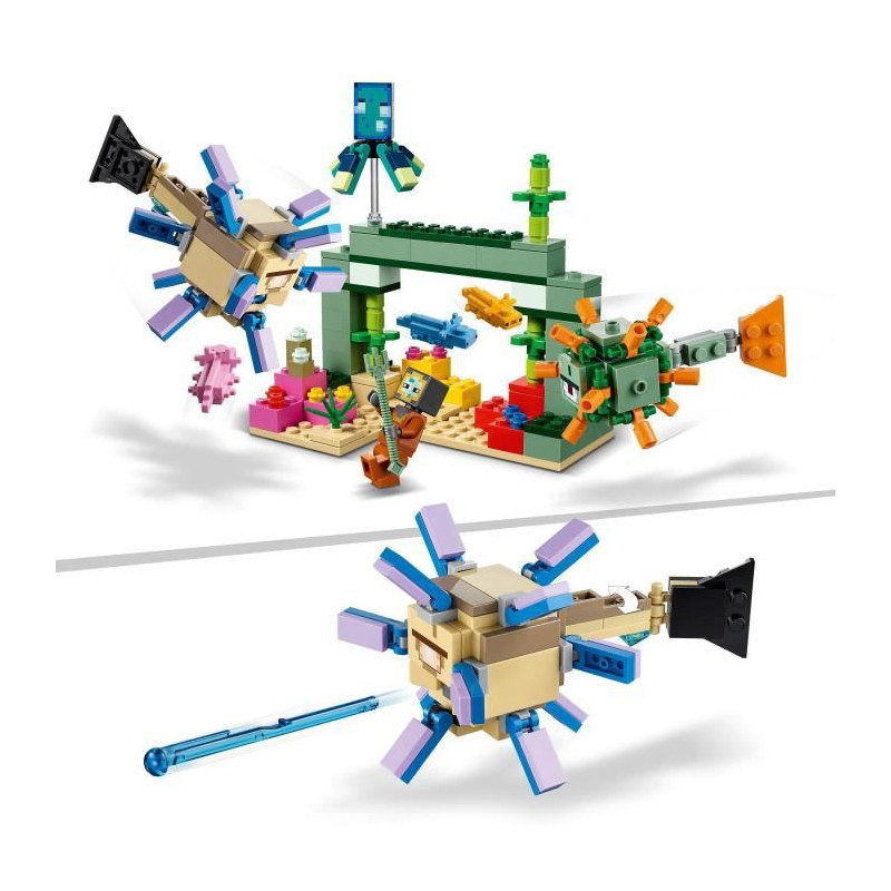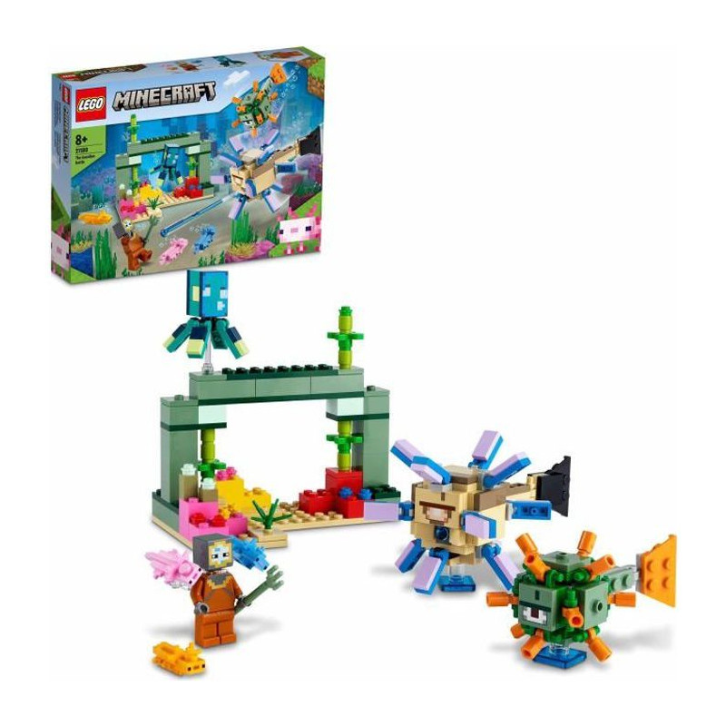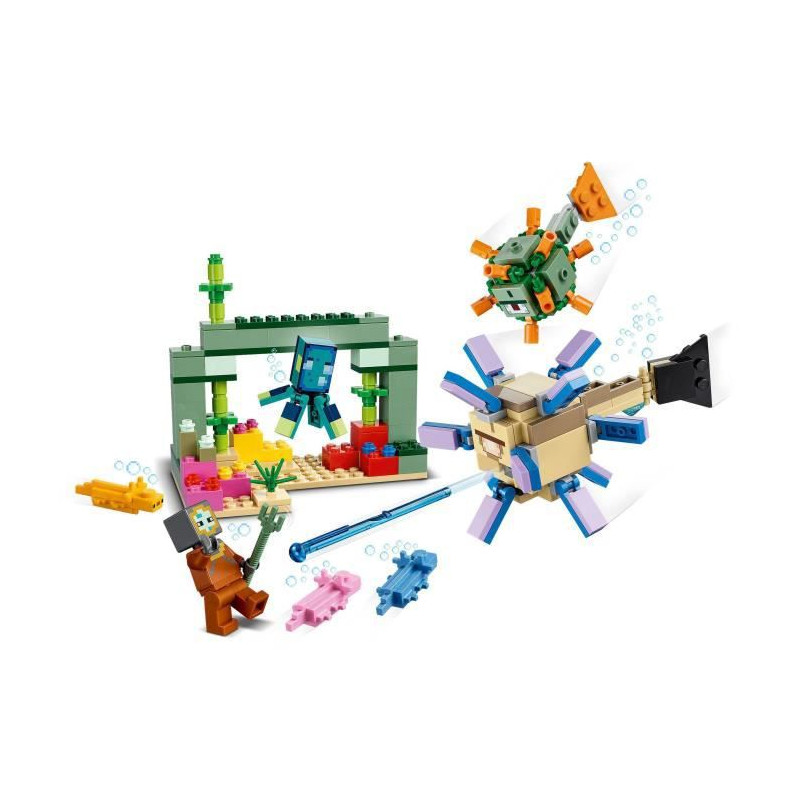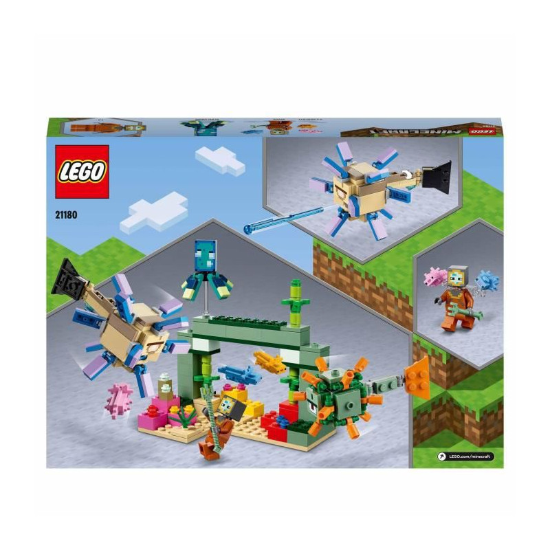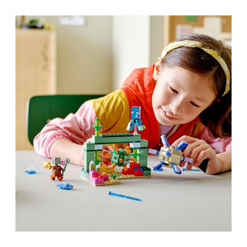 Le jouet pour enfants des 8 ans LEGO Minecraft Le combat des gardiens (21180) plonge les joueurs dan, s une aventure Minecraft sous-marine regorgeant de personnages et d'éléments emblématiques du jeu be, st-seller. Les enfants relevent un défi bourré d'action dans ce set Minecraft aux missions captivant, es se déroulant sous l'océan.