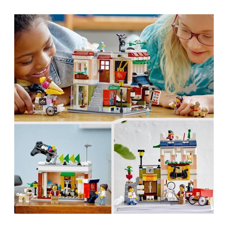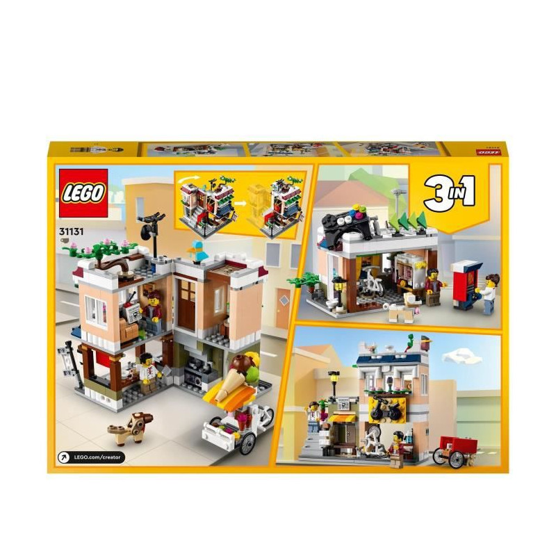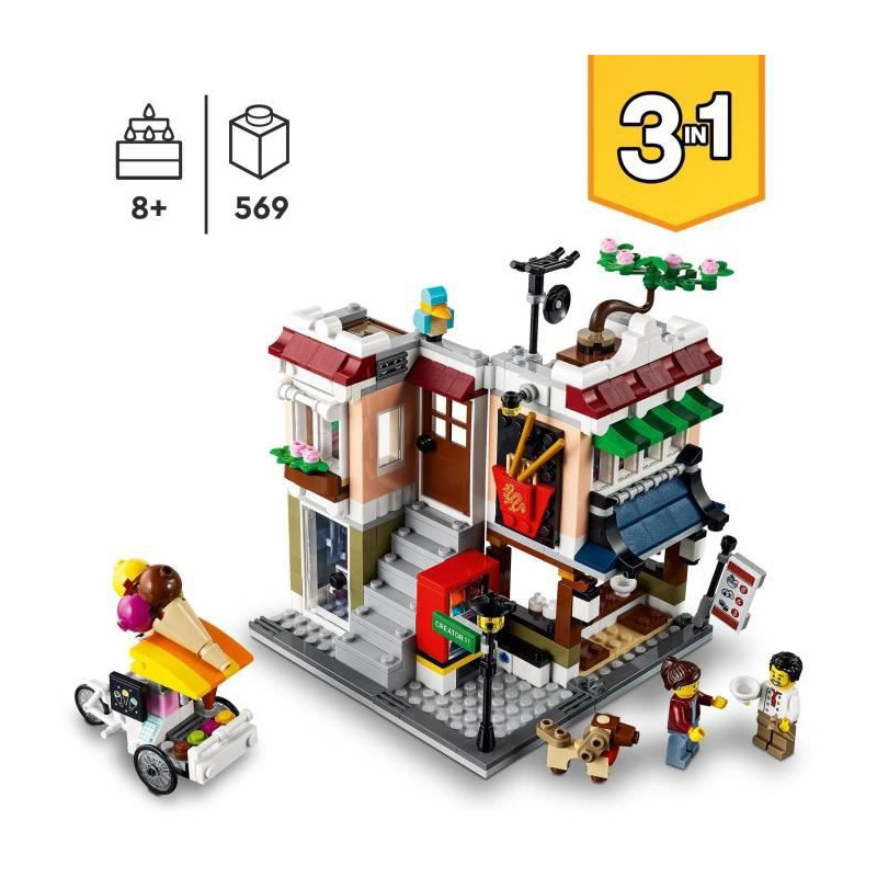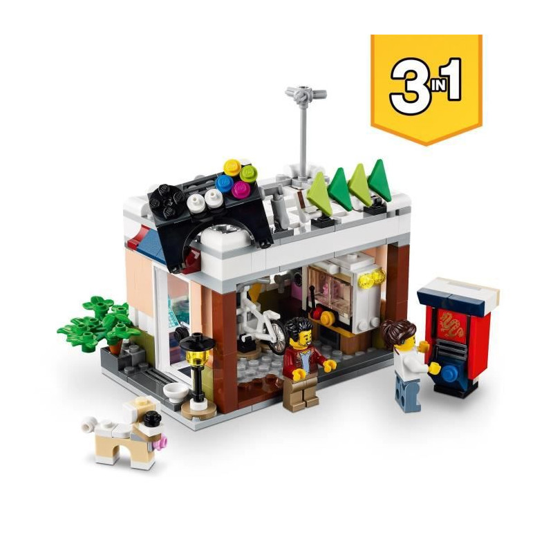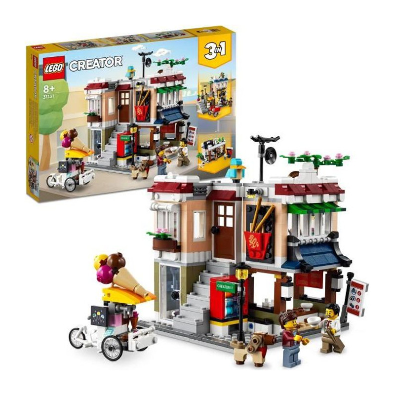 C'est le moment de vivre des aventures en ville avec ce merveilleux jouet a construire pour enfants LEGO Creator 3-en-1 Le Magasin de Nouille du Centre-Ville (31131). Il contient une maison de 2 étages abritant un magasin de nouille et un bel appartement avec un toit-terrasse. La maison s'ouvre a l'arriere pour multiplier les possibilités de jeu.