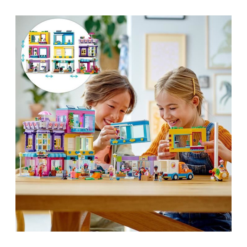 Les enfants adoreront passer du temps au coeur de ce quartier avec le jouet de maison de poupée LEGO Friends Heartlake City L'Immeuble de La Grand-Rue (41704). Il inclut 3 bâtiments qui se connectent pour devenir un jouet de maison LEGO Friends dans un quartier avec des boutiques, une supérette et des logements.