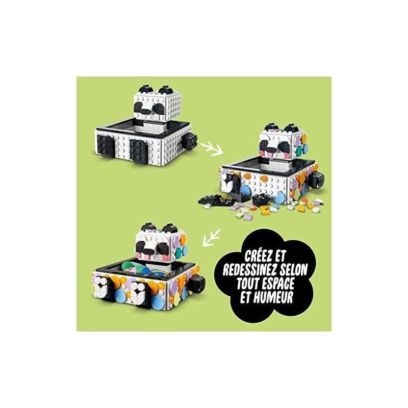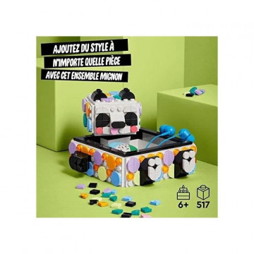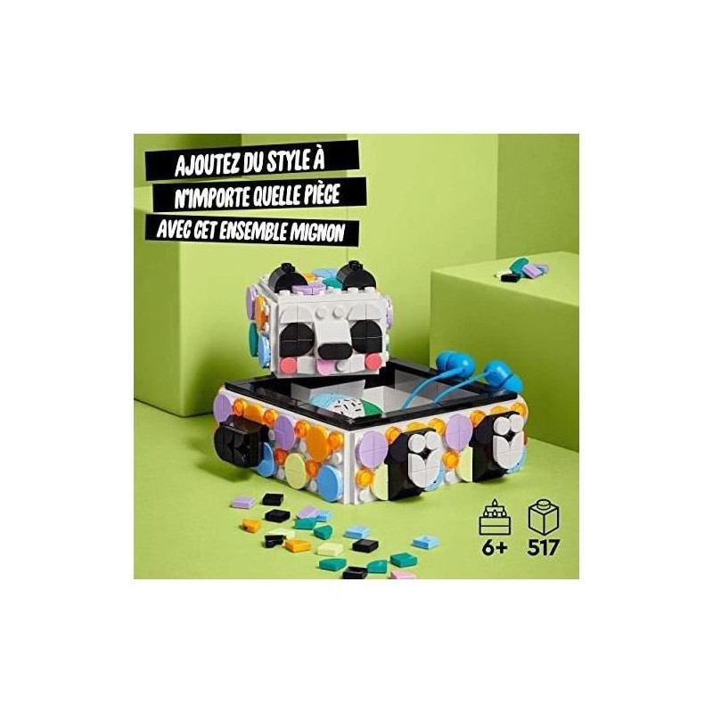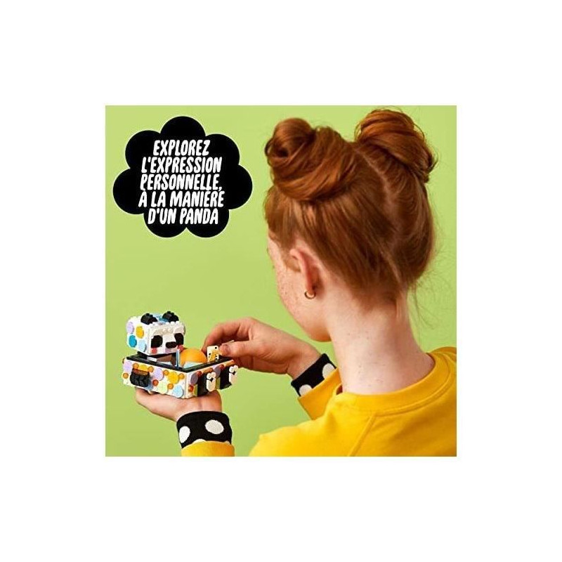 Les enfants seront ravis de créer un adorable jouet de panda pour garder tous leurs petits trésors ! Si vous avez un petit de 6 ans ou plus qui adore les pandas, il sera tres heureux de posséder cette boîte a bijoux pour enfants LEGO DOTS Le Vide-poche Panda (41959). Cette activité manuelle pour enfants se compose d'un grand plateau, qui comprend de nombreuses tuiles décoratives DOTS.