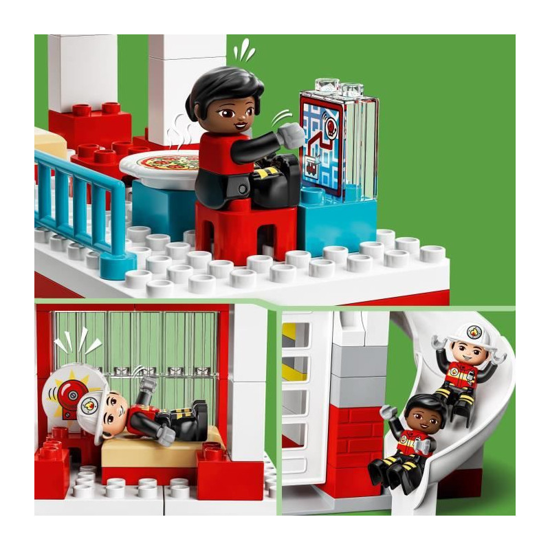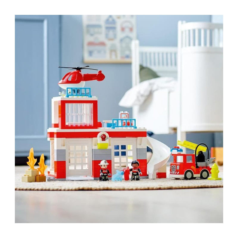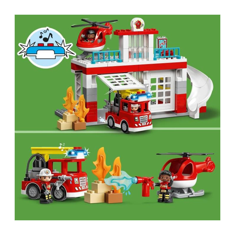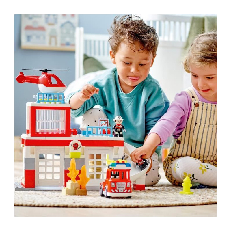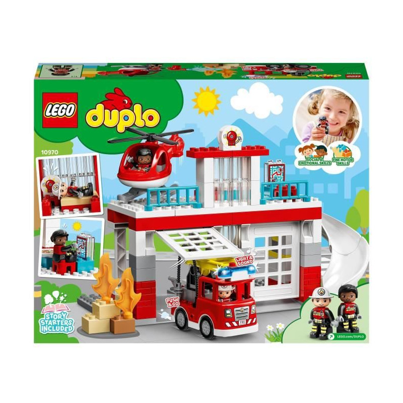 LEGO 10970 DUPLO La Caserne Et L'Hélicoptere des Pompiers, Jouet de Camion, Motricité, Grandes Briques, Cadeau Enfants Des 2 A