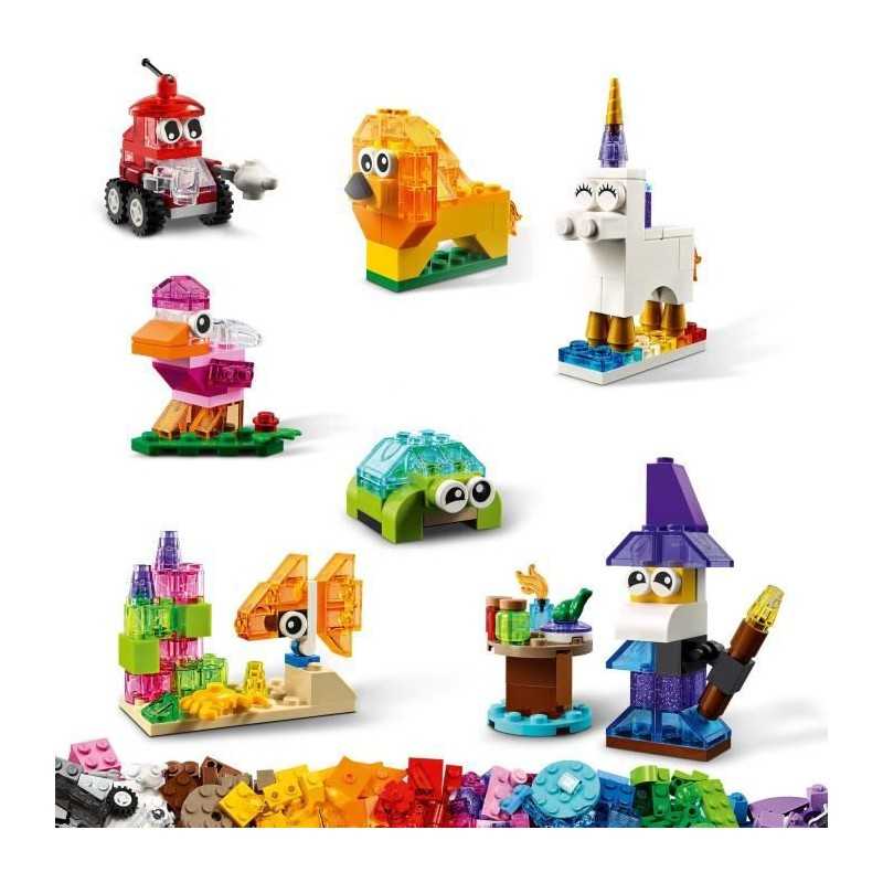 Les enfants peuvent apporter une touche de brillance a toutes leurs créations LEGO® avec cet incroyable set - 8 idées de modeles amusants avec des briques transparentes, plus d'autres pieces LEGO.