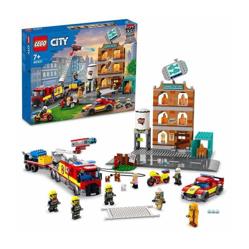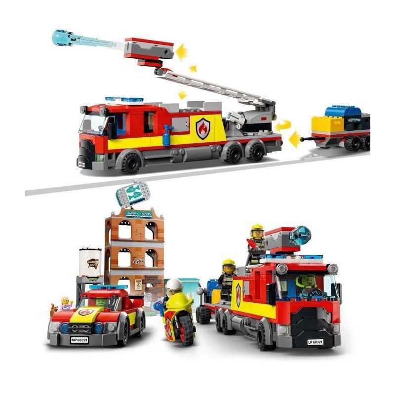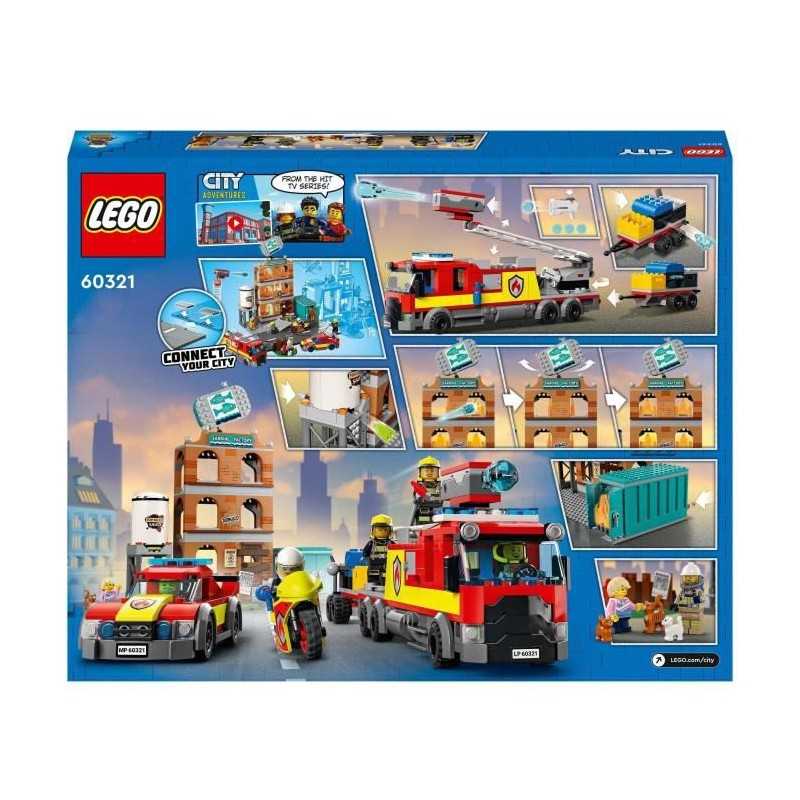 LEGO 60321 City Fire La Brigade des Pompiers, Jouet de Camion, Moto et Remorque, avec Figurine de Chien, Garçons et Filles Des 7
