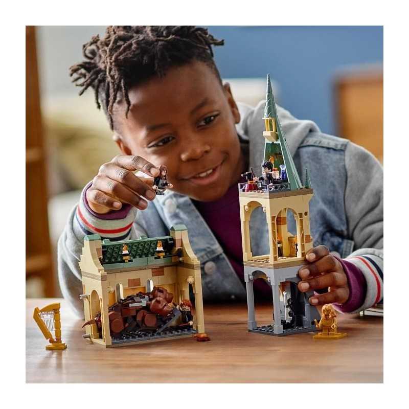 Les fans d'Harry Potter pour l'aider a se faufiler derriere Touffu, le chien géant a 3 tetes, dans ce set de construction de Poudlard polyvalent.