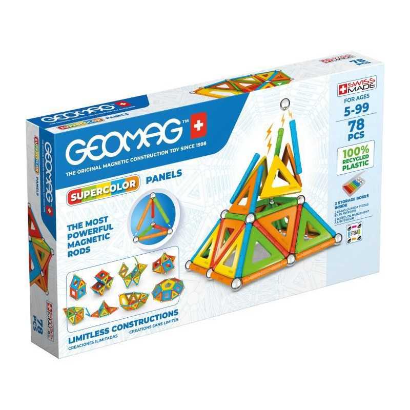 GEOMAG CLASSIC, PANELS SUPERCOLOR 78 pcs, construction magnétique, jeux éducatifs, Jouet pour enfants des 5 ans, GMS03