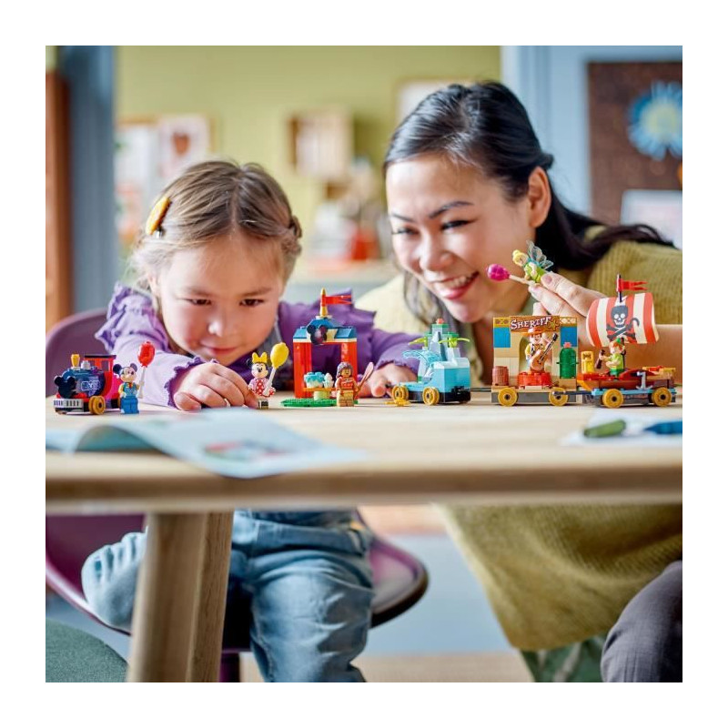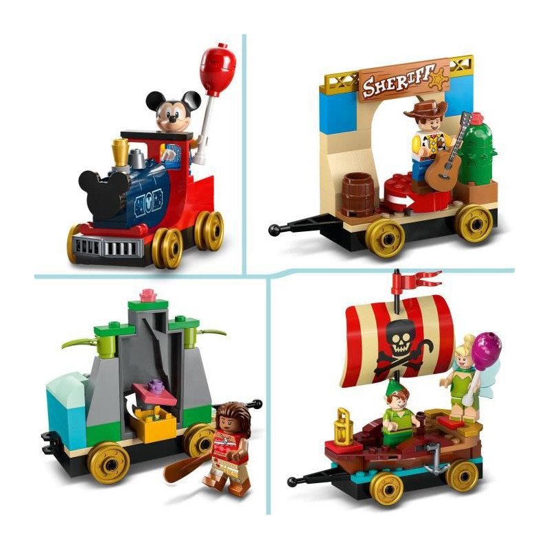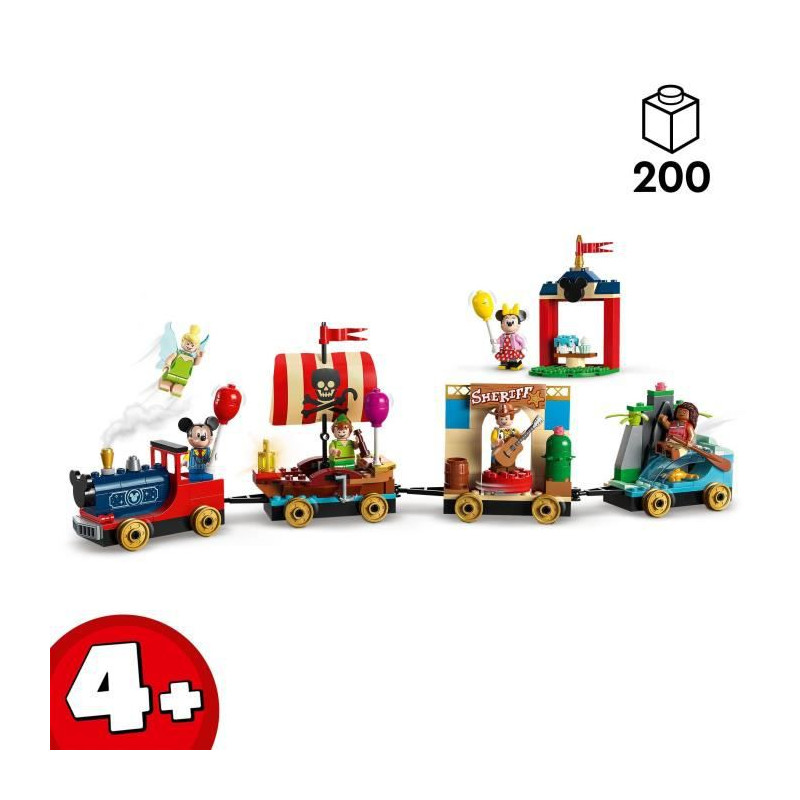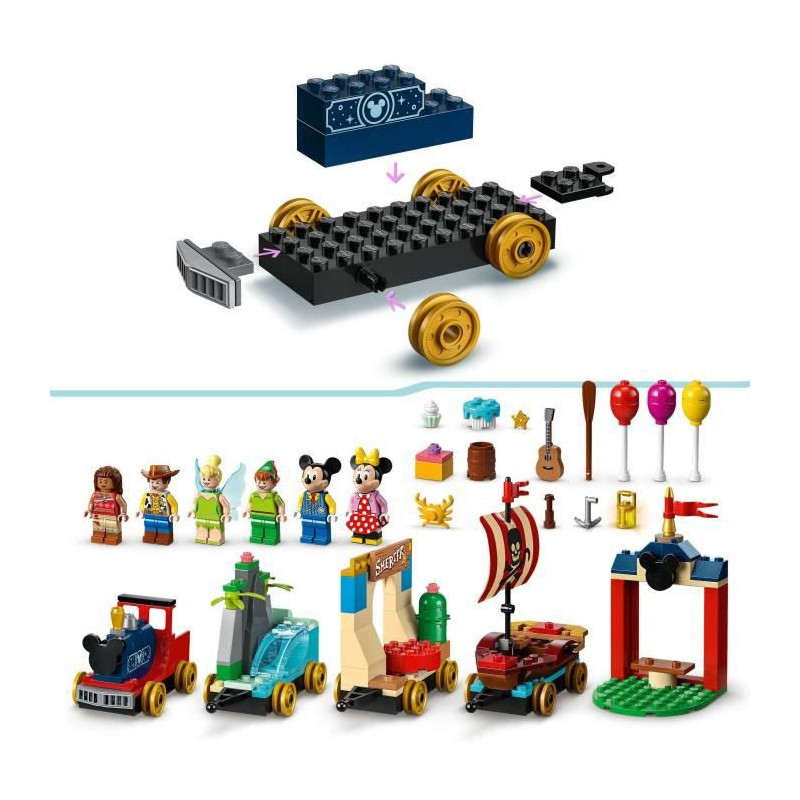 Captivez les jeunes constructeurs avec ce set LEGO® | Disney qui inclut 4 sections de train a construire, une gare, 6 minifigurines LEGO et de nombreux accessoires.