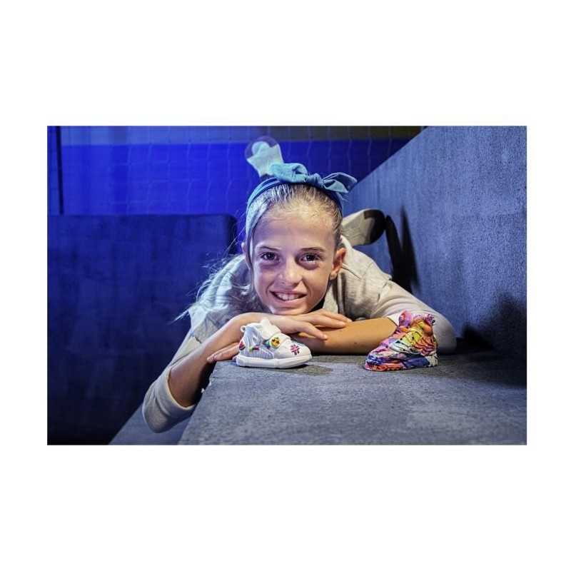 Cette fois-ci, utilise l'hydrographie ! Découpe un morceau de ta feuille d'hydrographie, pose-la sur ta basket et mets un peu d'eau dessus pour que cela colle ! Utilise aussi les feutres effaçables et amuse-toi ! Une fois que tu as terminé, accroche ton porte-clé a ta basket et emmene-la partout avec toi !