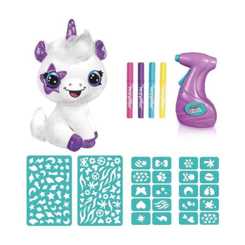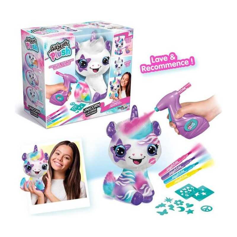 Peluche Air brush Licorne a personnaliser - Peluche spray art avec feutres et pochoirs - OFG228 - Canal Toys