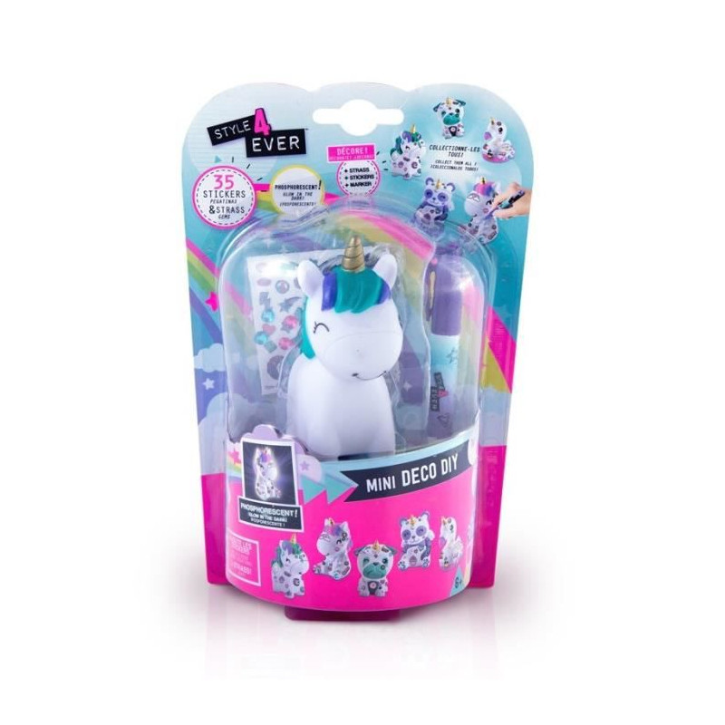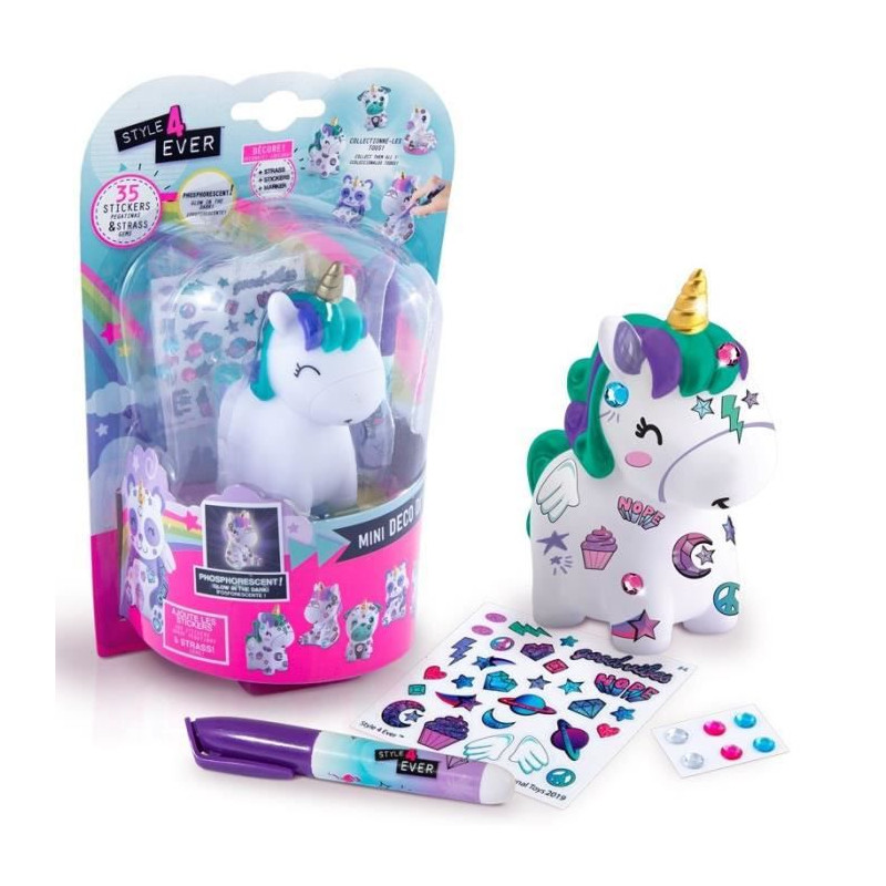 STYLE 4 EVER Mini Deco DIY - Mini personnage Licorne 2 phosphorescent a décorer et collectionner - OFG 198 - 6 ans et +