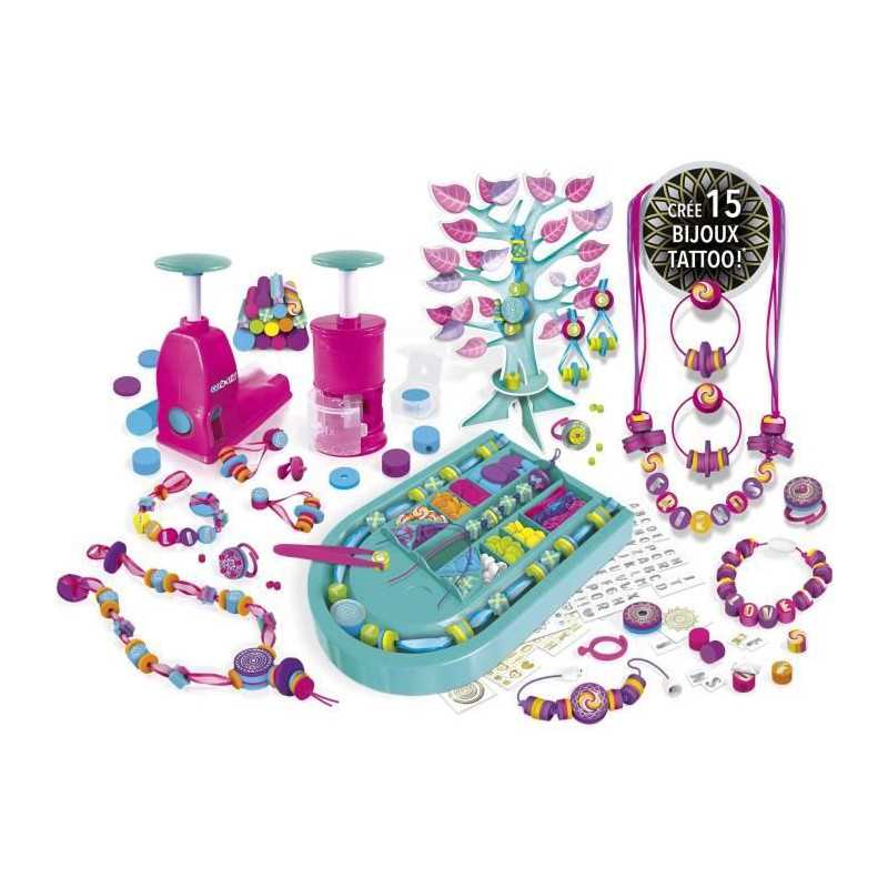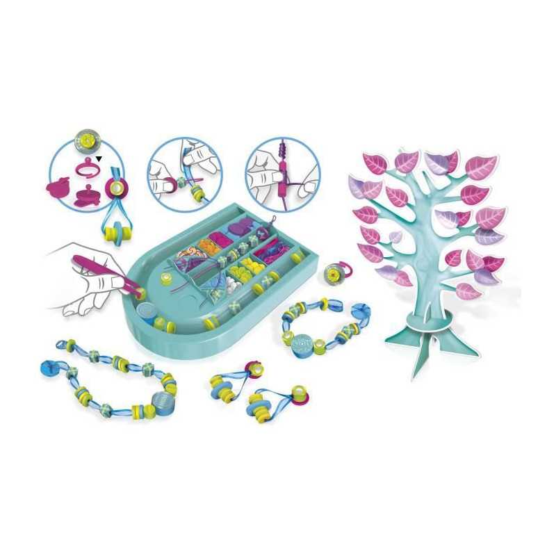 a l'aide de ton atelier réalise plus de 15 créations tendances : des bracelets, des colliers, des bagues et meme des boucles d'oreille ! Des 6 ans.