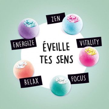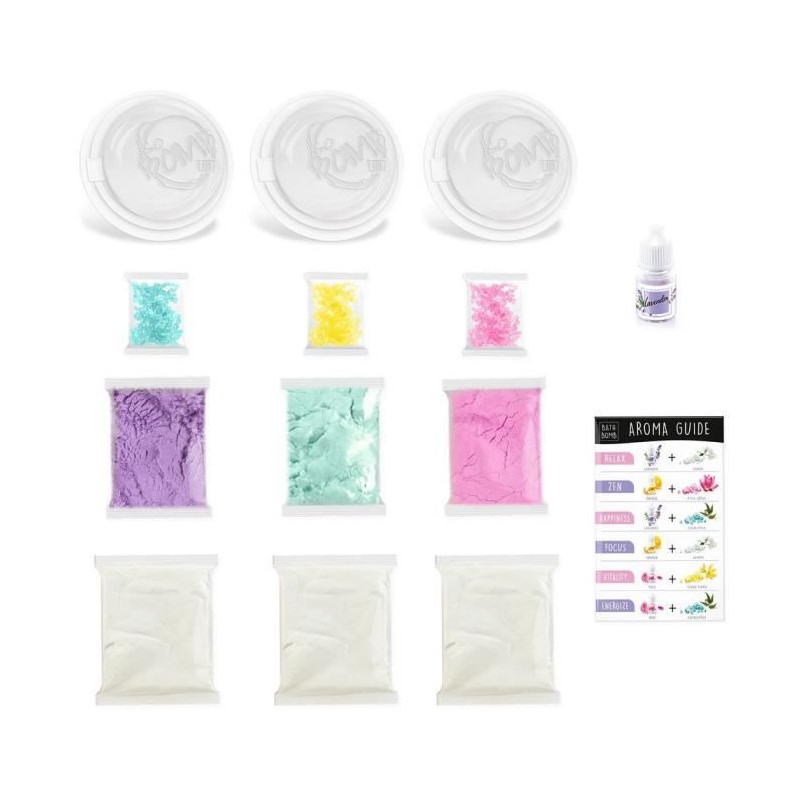 Ce kit contient tout le nécessaire pour fabriquer 3 bombes de bain d'aromathérapie : mélange les couleurs, les senteurs pour des vertues différentes. Une formule sûre et non toxique, conforme aux normes cosmetiques et aux normes du jouets.