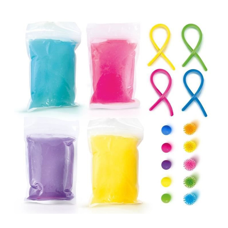 Un baril d'1 kilo de slime pour découvrir des sensations uniques ! 4 COULEURS DE SLIME : Une texture de slime super extensible et non collante idéale pour les enfants. INCLUS DES FIDGET TOYS : ajoute les fidget toys au slime pour encore plus de fun et un effet 100% déstressant ! UN RANGEMENT PRATIQUE : facile a transporter.