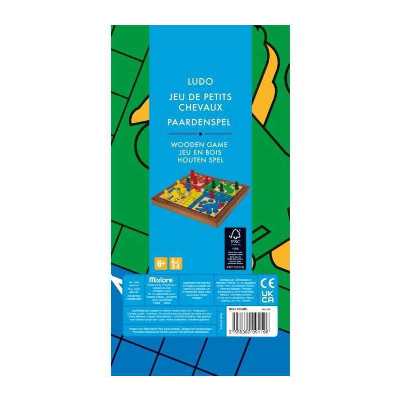 Mixlore | Ludo : Jeu de petits chevaux pliable | Jeu de société en bois | a partir de 6 ans | 2 a 4 joueurs