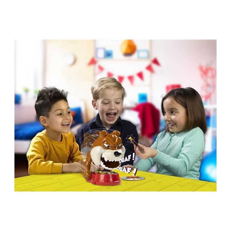 Dog veille jalousement sur sa gamelle remplie d'os! - Essaye de chiper des dans sa gamelle sans le réveiller! Mais attention ! Quand on touche a son os, il devient féroce ! - 2 joueurs et + - Age minimun: 4 ans et - Temps de partie: 10 minutes