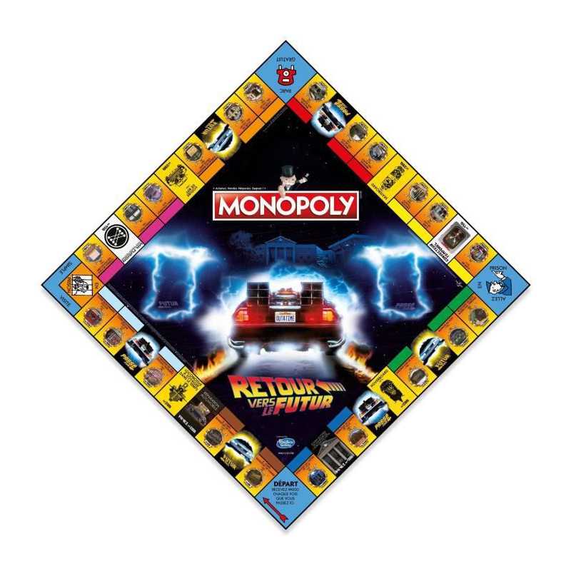 Tout l'univers de Retour vers le futur sur un plateau de Monopoly - Monopoly : jeu de société où le but est d'etre le dernier joueur a ne pas faire faillite - Contenu : 6 pions de collection en métal, billets, cartes, hôtels et plateau personnalisés - De 2 a 6 joueurs - Durée de la partie : 1h30 environ - Version française - A partir de 8 ans - Livré a l'unité.